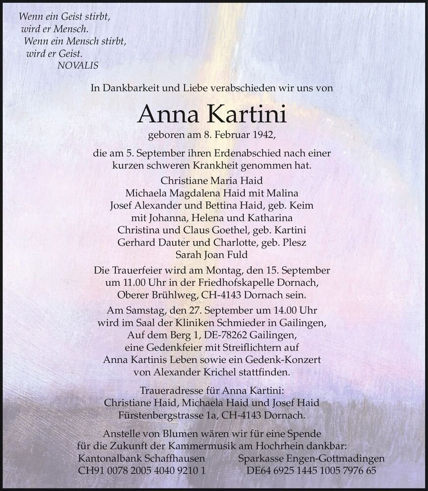 am 5. September, nach kurzer schwerer Krankheit, verstorben ist.